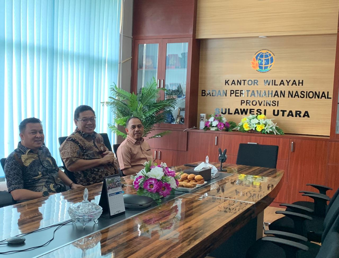 Rombongan tersebut diterima langsung oleh Kepala Kanwil BPN Sulut, John Wiclif Wufa, A.Ptnh, di ruang kerjanya.
