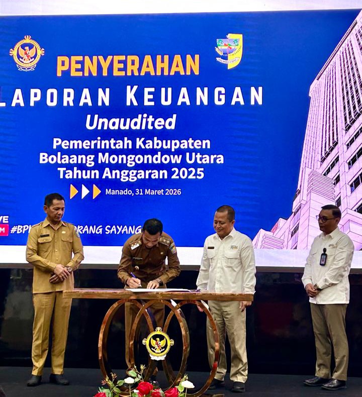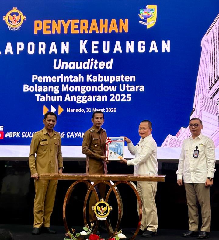 BOGANINEWS, BOLTARA – Pemerintah Daerah (Pemda) Bolaang Mongondow Utara (Boltara) menyerahkan Laporan Keuangan Pemerintah Daerah (LKPD) Tahun 2025 kepada Badan Pemeriksa Keuangan (BPK) Republik Indonesia Perwakilan Provinsi Sulawesi Utara pada Selasa (31/3/2026).