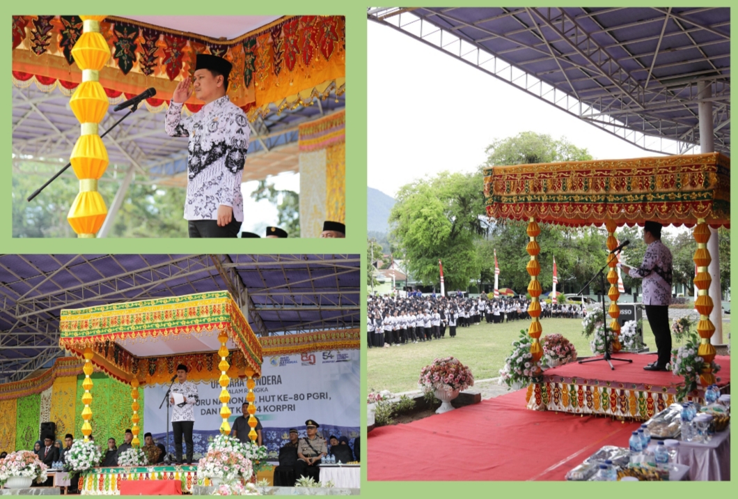 Dalam sambutanya Wakil Wali Kota Kotamobagu, membacakan Sambutan Menteri Pendidikan Dasar dan Menengah, Prof. Dr. Abdul Mu’ti, M.Ed mengatakan dimana Kehadiran Guru sebagai Agen Peradaban semakin diperlukan di tengah Kompleksitas permasalahan murid seperti masalah Akademik, Sosial, Moral, Spiritual, ketergantungan Gawai, Judi Online, kesulitan Ekonomi, Keharmonisan keluarga, dan sebagainya. kehadiran guru kian diperlukan oleh Murid di dalam dan di luar kelas sebagai figur Inspiratif, Teladan, Digugu dan Ditiru, Orang tua, Mentor, Motivator, dan Sahabat dalam Suka dan Duka.