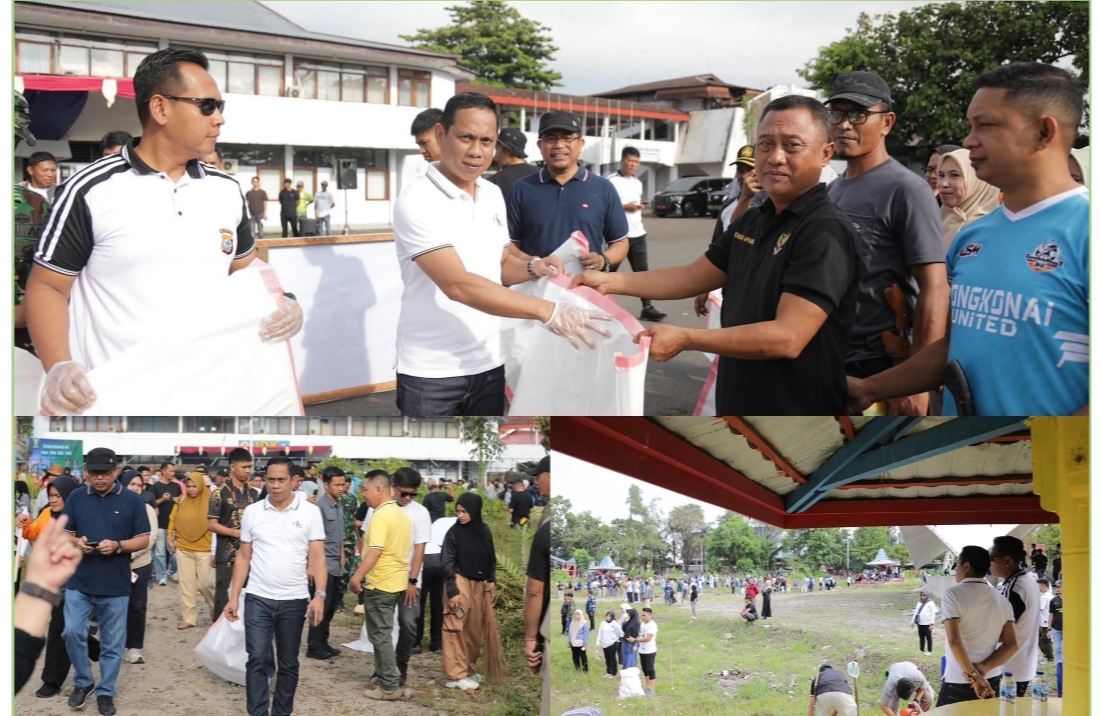 Kegiatan yang penuh semangat kebersamaan tersebut, mengusung slogan Mondarit, juga turut melibatkan Forkompinda, personel TNI/Polri, bersama dengan seluruh ASN, petugas kebersihan DLH juga Warga Kotamobagu pada Jumat (06/02/2026).