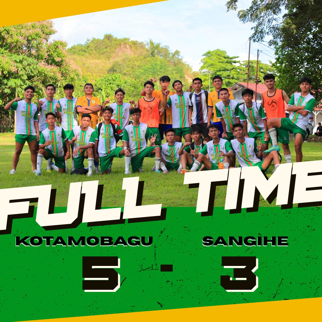 Sebelumnya kedua kesebelasan bermain imbang 1-1 pada waktu normal hingga tambahan waktu kemudian dilanjutkan adu penalti dan Kota Kotamobagu menang dengan skor 5-3.