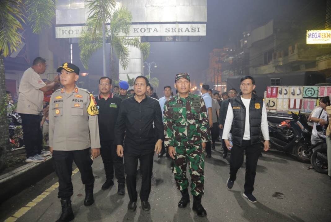 BOGANINEWS, KOTAMOBAGU – Wali Kota Kotamobagu, dr. Weny Gaib, Sp.M., bersama Wakil Wali Kota Kotamobagu, Rendy Virgiawan Mangkat, S.H., M.H., Dandim 1303 Bolaang Mongondow, Letkol Inf. Manashe Lomo, S.H., M.I.P., Kapolres Kotamobagu, AKBP Irwanto, S.I.K., M.H., Kepala Kejaksaan Negeri Kotamobagu, Saptono, S.H., dan Kasubden POM Bolmong, Kapten. CPM. Risky Aditya, melakukan pemantauan situasi Keamanan dan Ketertiban di wilayah Kota Kotamobagu pada Malam Pergantian Tahun Baru 2026, pada Rabu 31 Desember 2025, bertempat di sejumlah titik pusat kota.