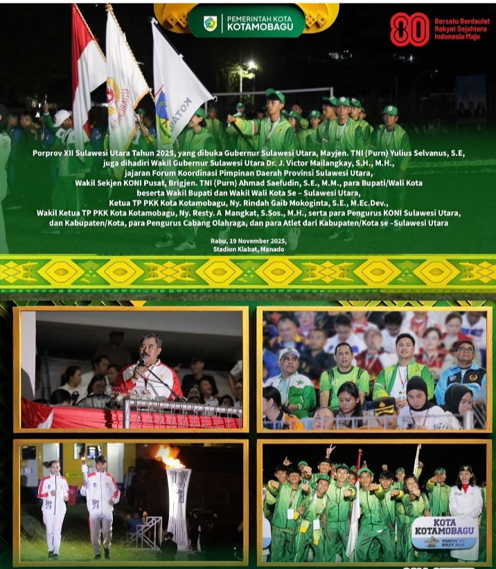 Sebagaimana diketahui pada pelaksanaan Pekan Olahraga Provinsi (Porprov) XII Sulawesi Utara Tahun 2025, Kontingen Kota Kotamobagu mengirimkan sebanyak 234 Atlet, yang mengikuti 21 Cabang Olahraga.