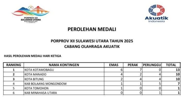 BOGANINEWS.COM,KOTAMOBAGU–Cabang olahraga akuatik menjadi penyumbang medali terbanyak bagi kontingen Kota Kotamobagu dalam ajang Pekan Olahraga Provinsi (Porprov) selengkapnya